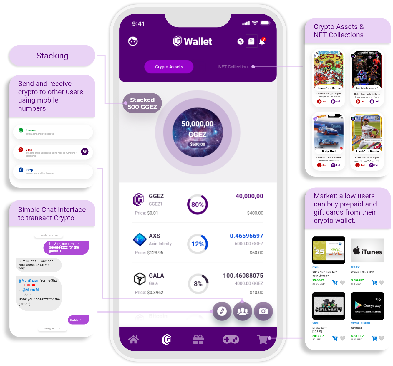 Members can instantly exchange earned rewards tokens for other crypto assets, NFTs, prepaid vouchers & gift cards, transfer them to other members, or use them to buy from merchants.